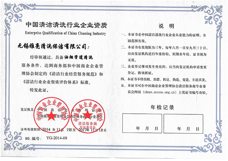 中国清洁清洗行业企业资质